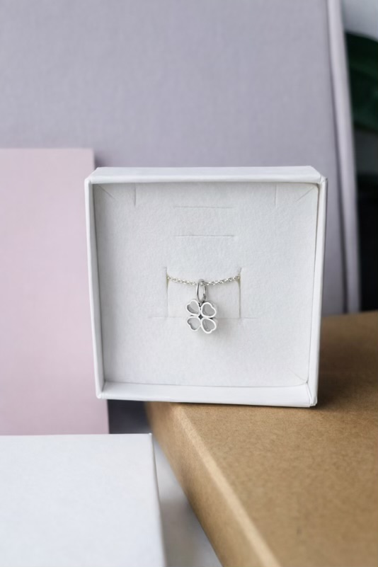 In de doos zit een mooi, handgemaakt klavertje waarin jij kiest hoeveel blaadjes gevuld worden: