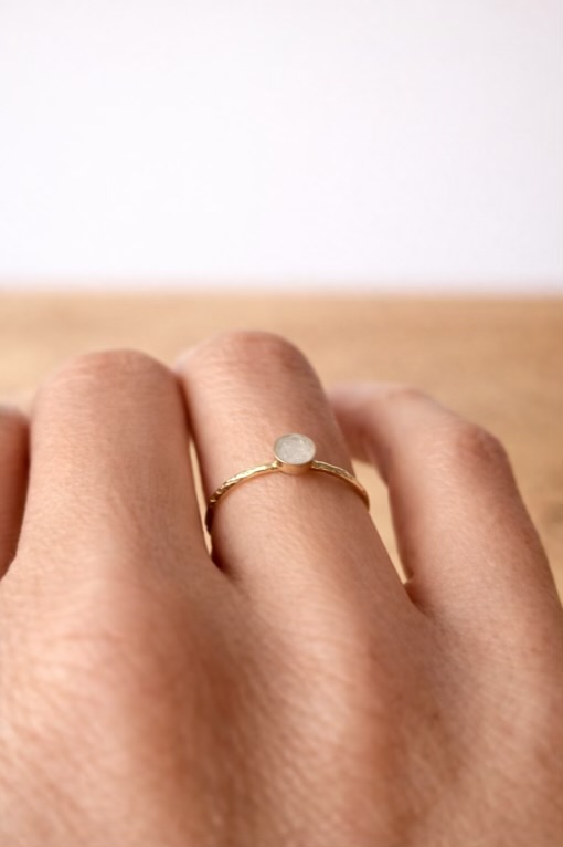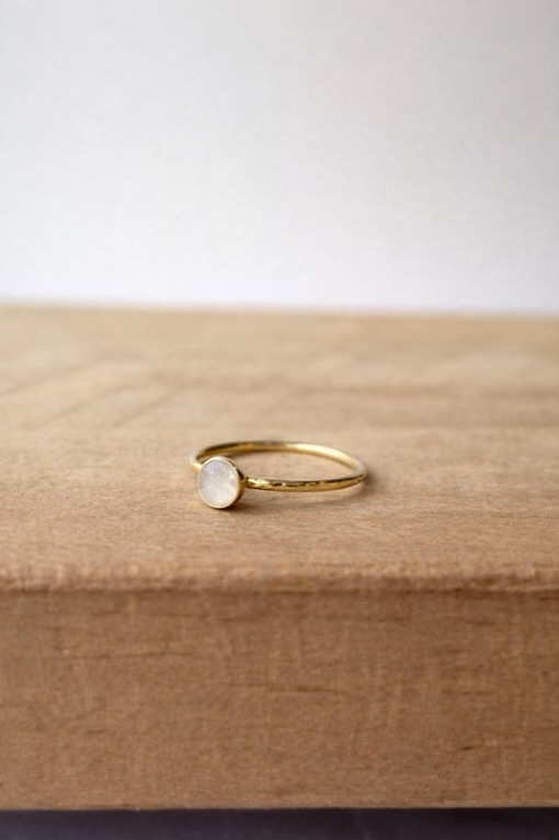 - Een heel fijne ring van 1mm met een ronde moedermelksteen van 4mm