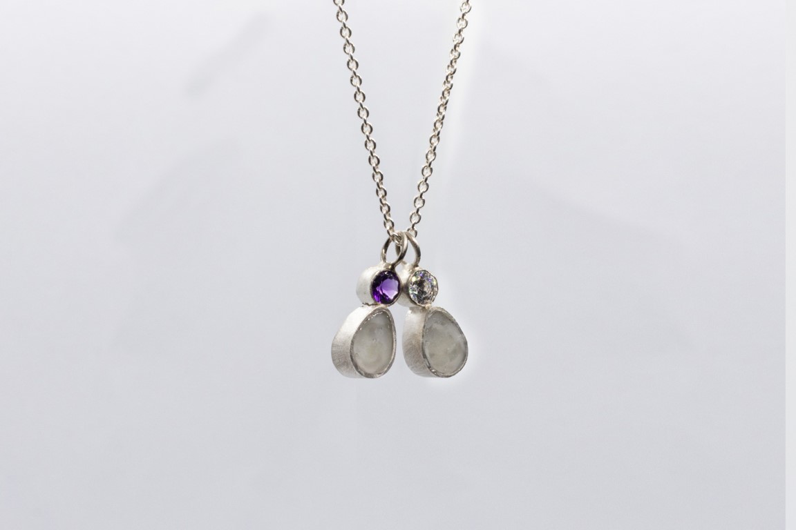De geboortesteen wordt toegevoegd boven de druppel.
