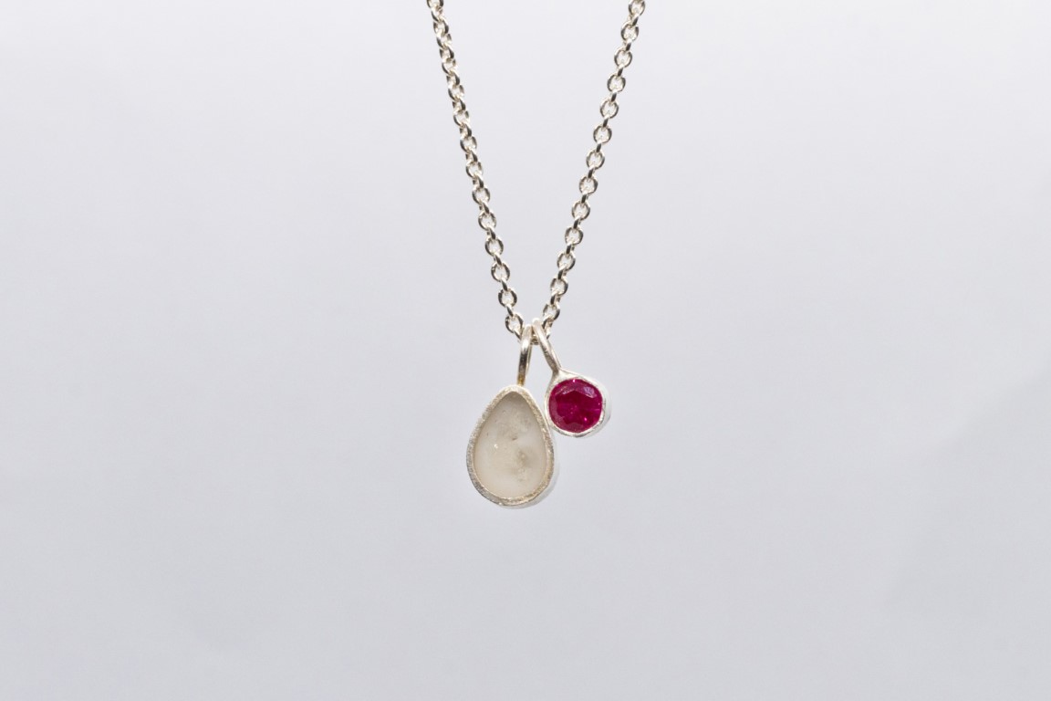 Deze fijne druppelhanger is ongeveer 8 mm groot en wordt met zorg gevuld met een inclusie die voor jou iets vertelt.