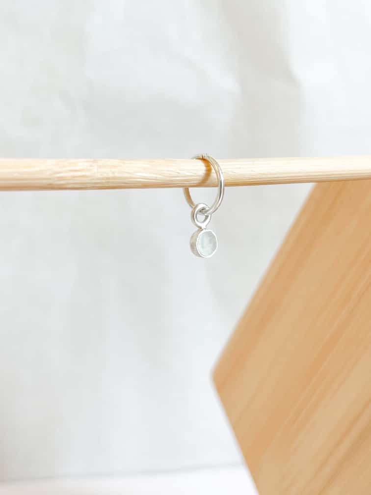 Dit verfijnde hangertje voor de oorring heeft een rondje van 5mm voor een inclusie naar keuze.