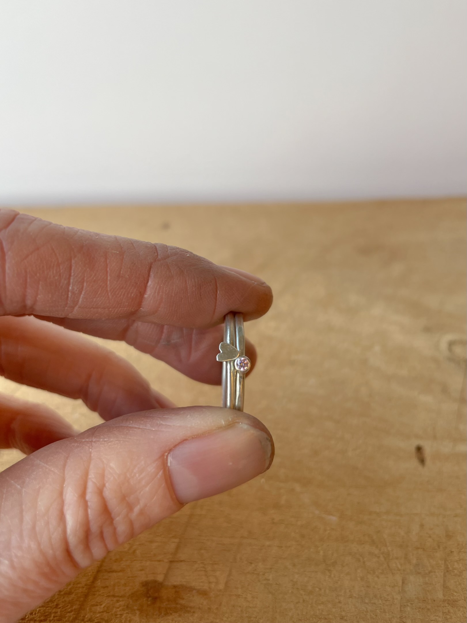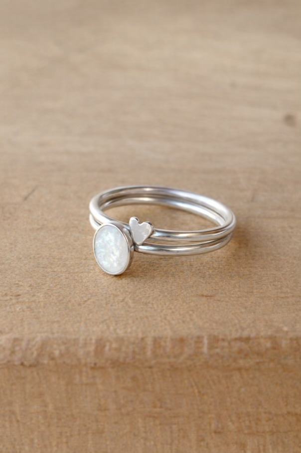 Stacking ring handgetekend hartje