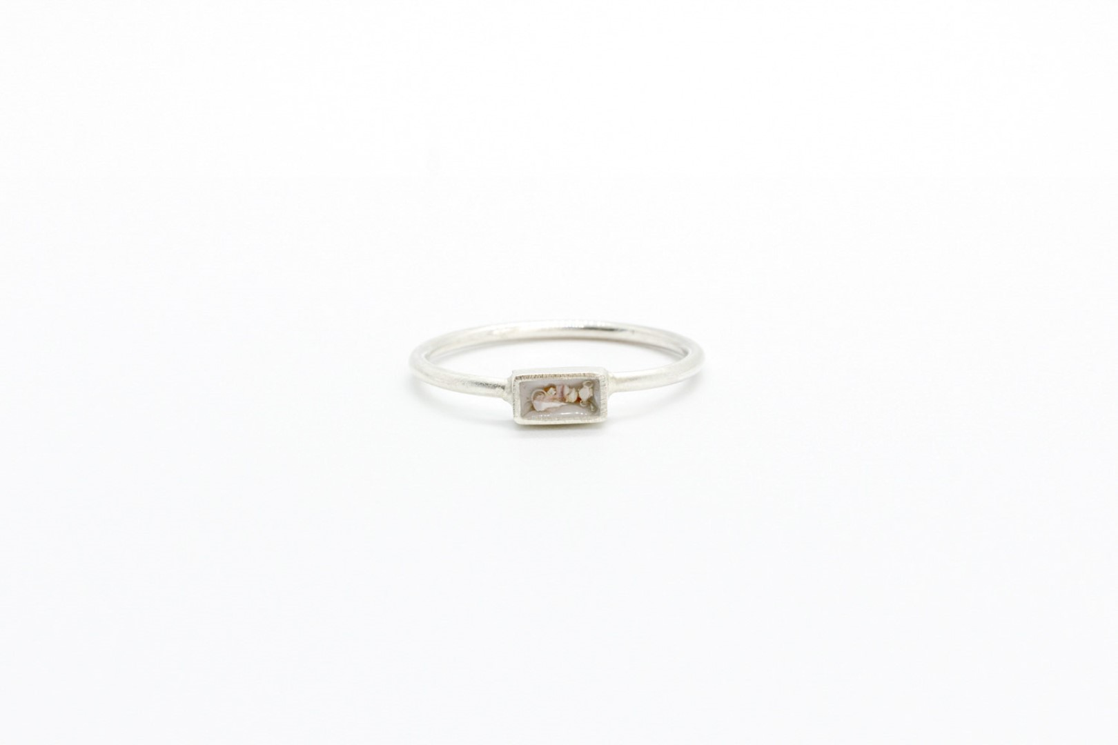 Deze fijne ring is prachtig in alle eenvoud. Een rechthoek van ongeveer 7mm draagt de inclusie die jij het belangrijkst vindt.