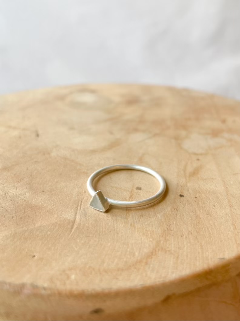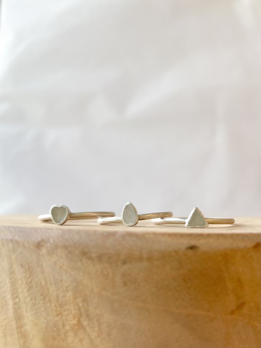 Deze fijne stapelring draagt een subtiele inclusie naar keuze, zoals moedermelk, en staat symbool voor een moment dat je gevormd heeft.