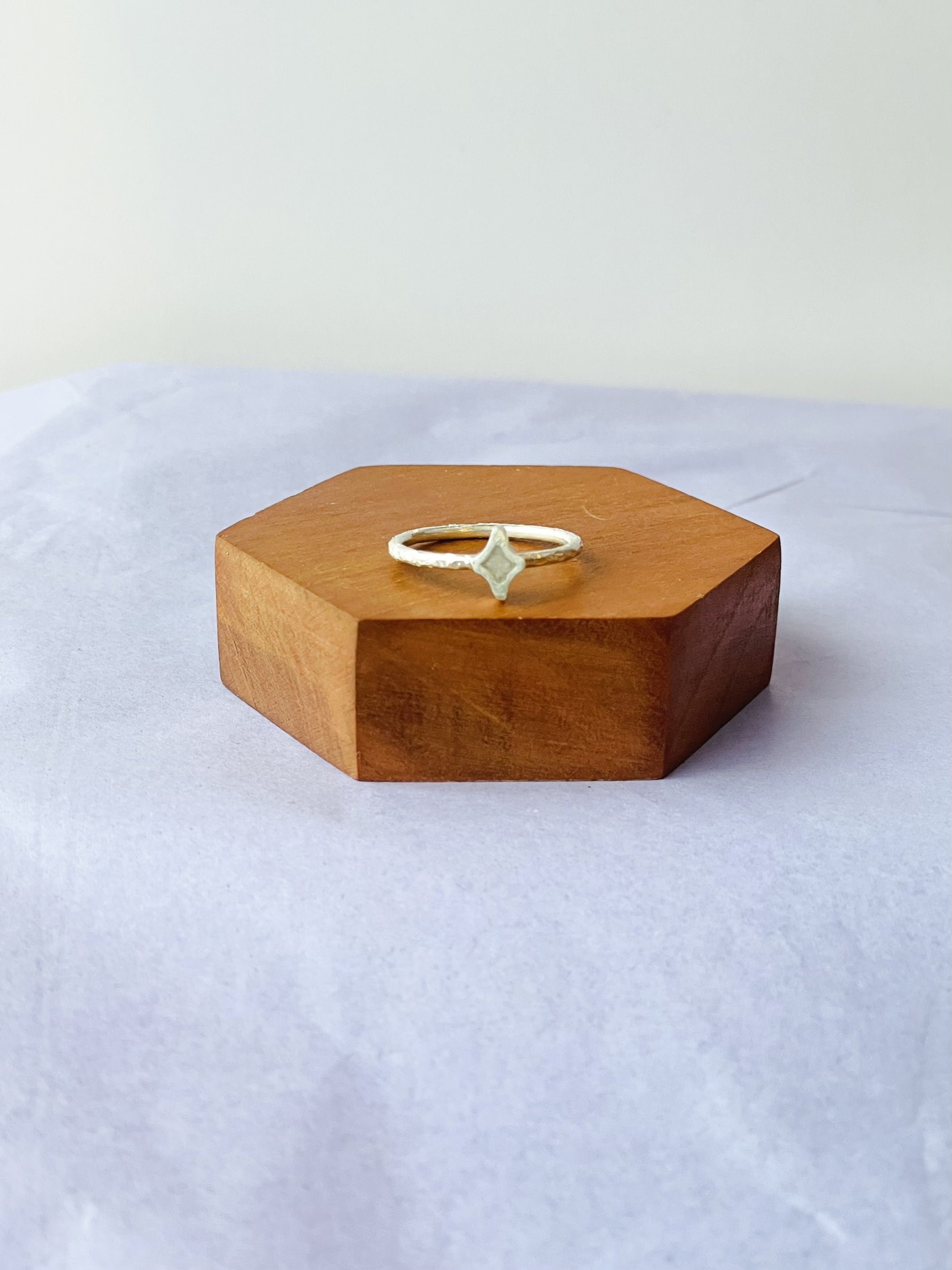 Deze fijne stapelring draagt een subtiele inclusie naar keuze, zoals moedermelk, en staat symbool voor een moment dat je gevormd heeft.